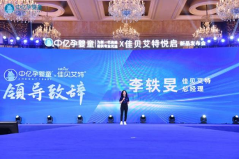 佳贝艾特总经理李轶旻在佳贝艾特悦启启动会上致辞,中亿孕婴童携手佳贝艾特共创辉煌!